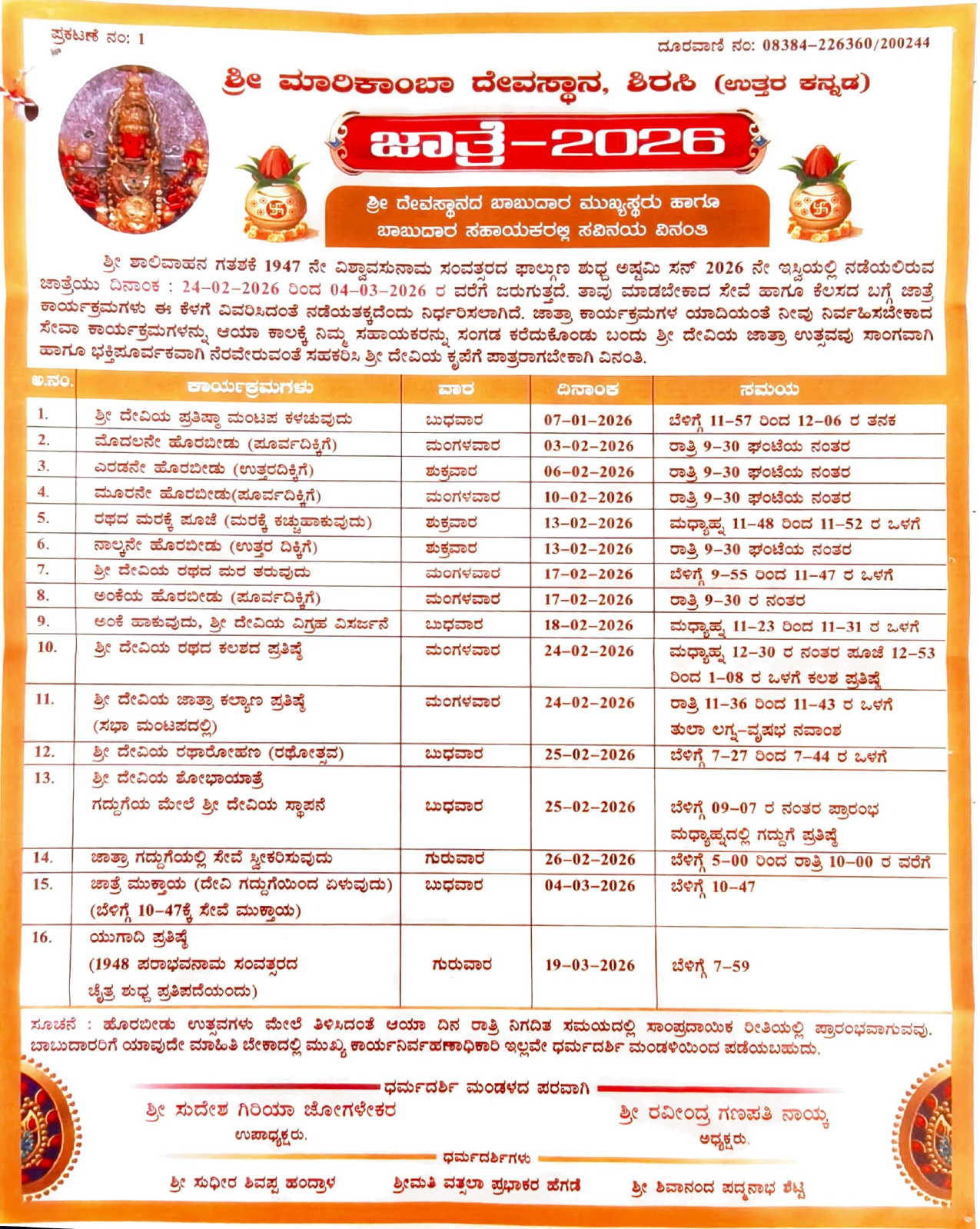 1) Sri Marikamba Jatra Handbill